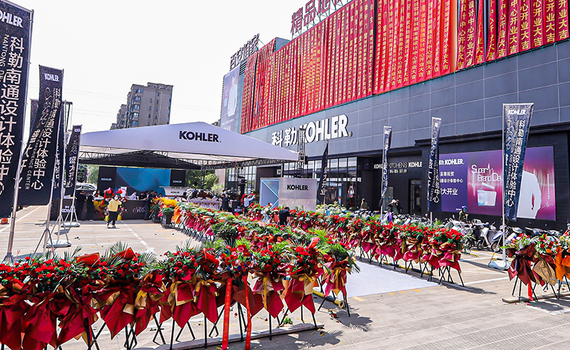 科勒南通設計體驗中心共2000平米,也是全國第27家設計體驗中心,1200余件展品全方位多角度展示了科勒衛浴產品,包括紐密聲光智能一體座便器、藝術系列、科勒精選龍頭以及PVD龍頭產品; 展廳結合科勒廚房、科勒衣柜,更好的體現了品牌內涵及藝術感。